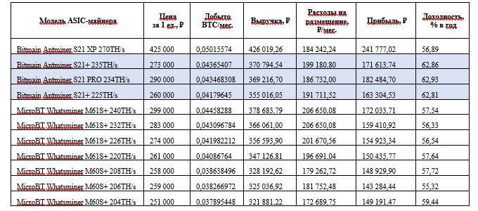 Топ-5 ASIC-майнеров по показателям доходности, % годовых