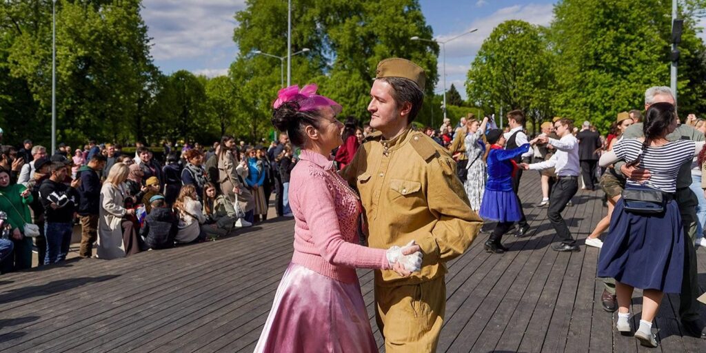 К юбилейной дате приурочили фестиваль «Московская весна Победы», который продлится до 11 мая. В его рамках проходят читки фронтовых стихов и писем, театральные постановки, танцевальные марафоны, спортивные мероприятия. Желающим предлагают приготовить кулеш, щи, макароны по-флотски и другие блюда полевой кухни на кулинарных занятиях.